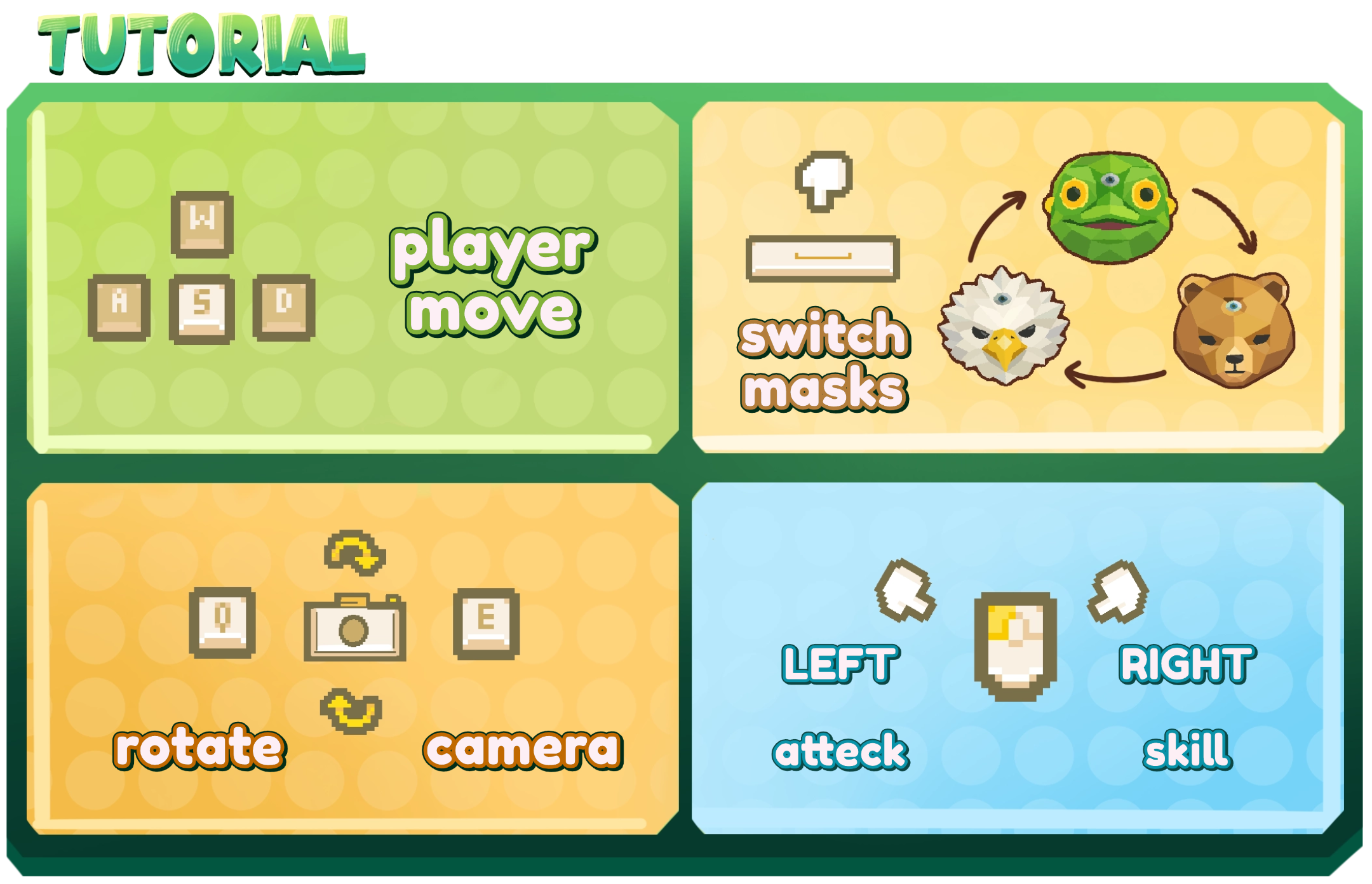 This is a top-down vampire survival game featuring multiple perspective shifts. Players acquire distinct animal abilities by donning different animal masks, and must strategically utilise these powers to survive as long as possible within the perilous rainforest.